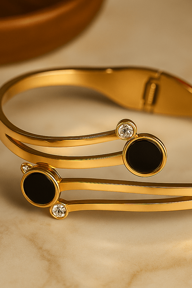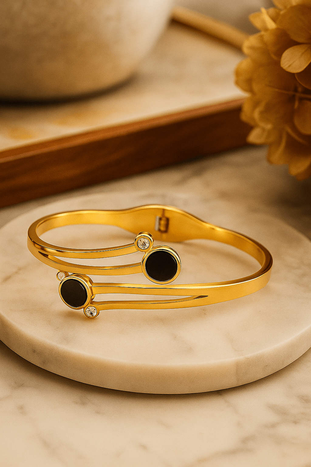 Sleek open-cuff design ensures a comfortable, adjustable fit
